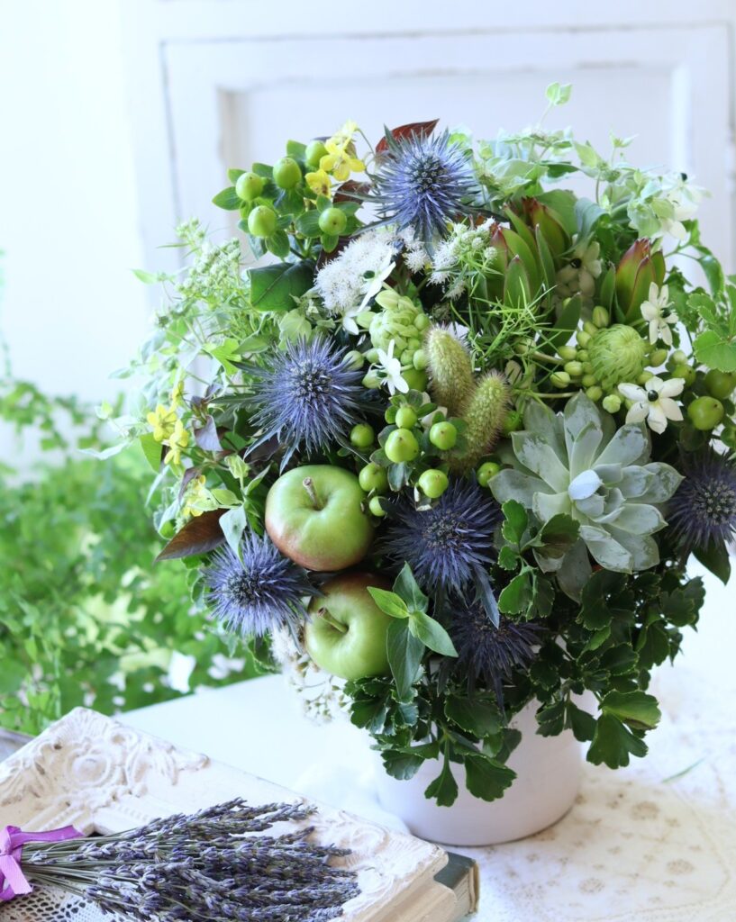 暑いときには暑いなりに、暑さに強い花やグリーンを使ってレッスン。花のように見える多肉植物や、カラーリーフに、質感いろいろの葉ものetc…ひとことでグリーンと言っても、なかなか多彩です☆